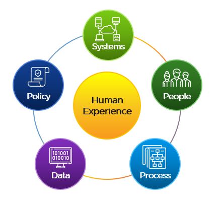 Providing a superb experience requires all parts of the transformation to be aligned. Therefore, they created a connected journey across five key areas—people, process, data, policy, and systems. It is the ability to connect these dots that have enabled them to drive a holistic business transformation.