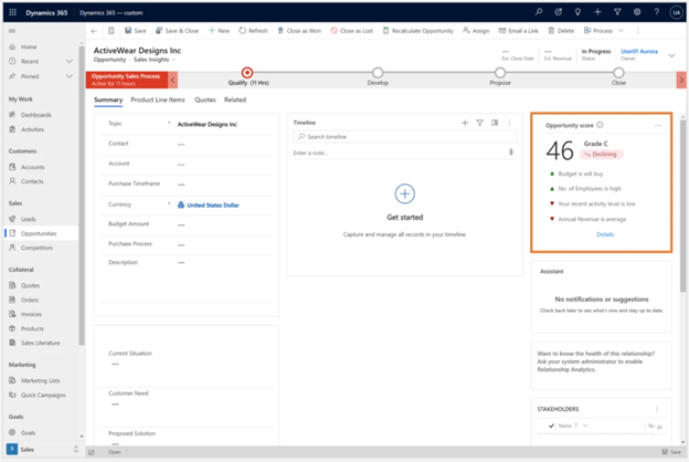For example, a high level of activity may indicate that the opportunity is heating up and is worth attention.