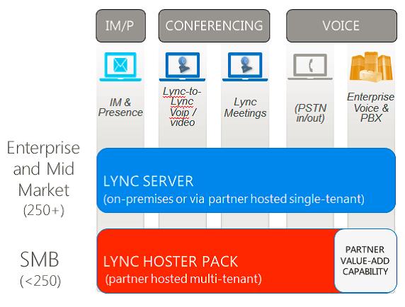 The Lync Hosting Pack is based on the multi-tenant architecture of Lync Online and is typically a more economical solution for customers with less than 250 users although it doesn’t support all of the Enterprise Voice & PBX features in Lync Server. These features can be enabled through third-party solutions to provide additional value added services.