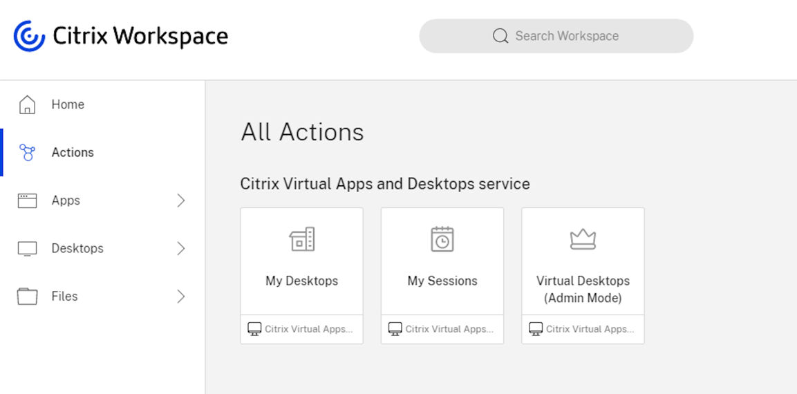 - My Sessions: Search for your Citrix virtual sessions and perform self-service actions from Citrix Workspace such as logging off and disconnecting.