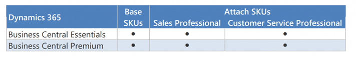This means, that if we have at least one Business Central license (Essential or Premium), we qualify for the base (base) license offer for the other two products of the Dynamics 365 family, which are:
